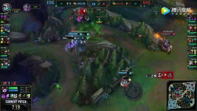 一把挖掘机、一把猪妹、一把酒桶外加三把皇子,全部都是开团利器,但EDG阵容的选择直接导致开团基本上都需要厂长,上单只能承担一点的开团能力,这就造成了厂长不在,很难开团;如果让辅助妹控也选择一些可以开团的英雄,可以分担开团压力,进而更好的开启团战,但EDG并没有这样做。。。