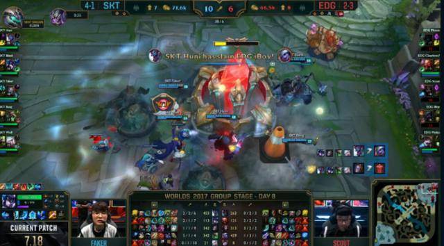 第二场面对SKT的比赛,Scout卢锡安脸探草丛,SKT0换4,顺势拿下远古巨龙和大龙,一波结束了比赛。