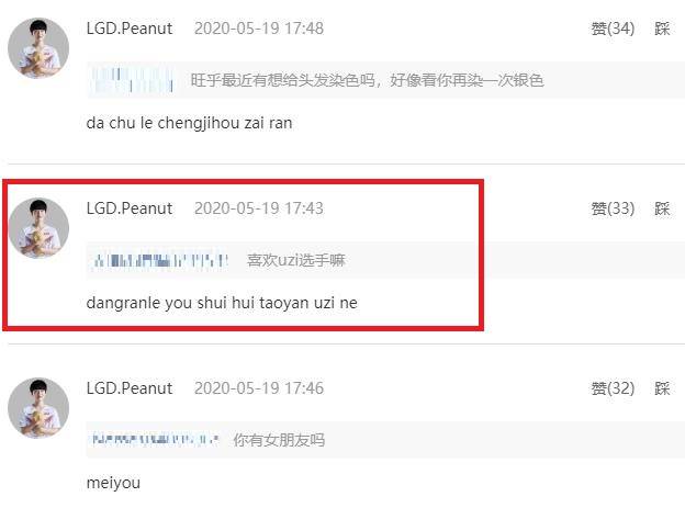 和UZI对线压力大,基本上是每个和他交过手的AD都会给出的评价。而除了AD选手之外,还有一位加入LPL不久的职业选手,也表达了自己对于UZI的喜爱,他就是LGD打野Peanut,Peanut是在回答粉丝提问时,说到了UZI的。