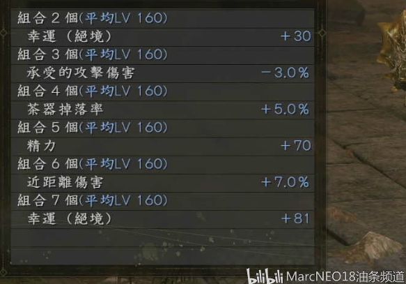 这套配装2件 +7件,可以让我们在残血状态下+幸运值。
