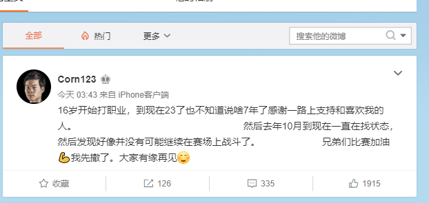 但是最终,玉米也是了解到,自己可能真的没有回到职业赛场上面的机会了。很多的网友都表示非常的可惜,英雄联盟要么吃荣誉,要么吃技术。如果两个都没有的话,那就只能渐渐的被遗忘。而玉米终于也是接受了这一点:“我没有退役,我只是没人要”!最终玉米宣布退役,结束了他这长达7年的职业生涯!