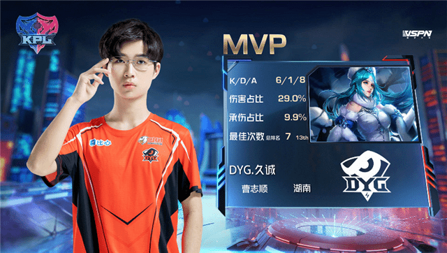 面对训练赛的失败,久诚完成了突破自己的心里障碍,与队友慢慢形成默契,经过近一个春季赛的努力与付出,将DYG打上了西部第二的好成绩。目前久诚的KDA高居全联盟第一,以6.93的KDA高出第二整整1.19!一手嬴政49%的输出,一手干将莫邪九成(久诚)命中率,让对手闻风丧胆。春季赛常规赛MVP,久诚也有资格评选,而且夺取MVP机会也极大!!