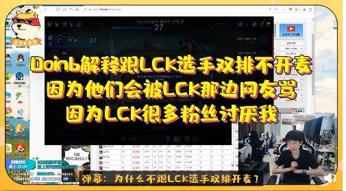 Doinb:对LCK选手不是很好,因为LCK那边很多粉丝都不喜欢我,是很讨厌我,然后跟我开麦容易被带节奏。LCK那边没有人看我直播,但有些人是看LCK选手直播,然后有时候他们开直播,知道跟我双排不是很好,之前有一个节奏然后有一个选手还道歉了,我们不直播的时候肯定会开麦双排,但我直播的时候就不太好。