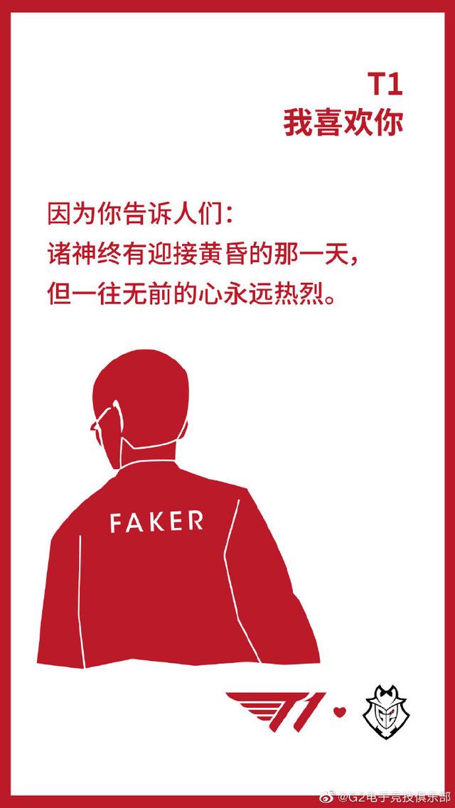 “T1,我喜欢你,因为你告诉人们:诸神终有迎接黄昏的那一天,但一往无前的心永远热烈”