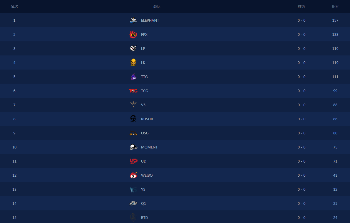 与A组相比,B组的情况或许是要正常一些。诸如Elephant、FPX、LP等战队都是顺利进入了淘汰赛。
