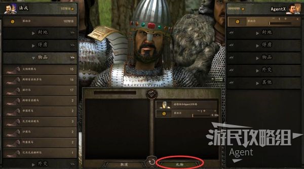 给他钱、地或者物品,直到“礼物”按钮变绿,就可以进行交易了。