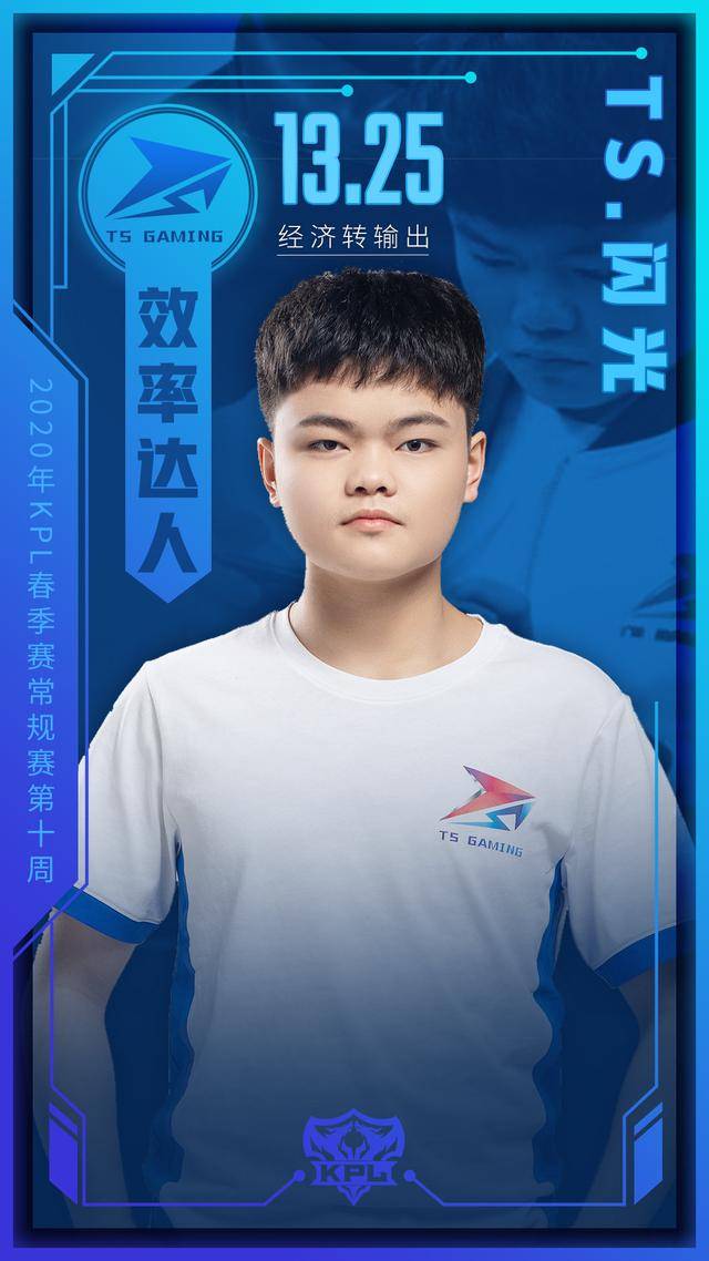 虽然闪光的人气没有上面我们介绍过的几位KPL选手人气高,但在KPL第十周的比赛中,闪光的发挥确实可圈可点,在对阵到EDGM战队的比赛中,闪光和暖阳的表现赢得了不少玩家的认可。在赛事数据方面,TS闪光不仅打出了周最高的输出,而且在经济转输出方面他也排在了第十周参与比赛的战队选手的第一位,对于这样一位潜力选手,作为观众,我们应该给他足够多的一些鼓励和关注度。