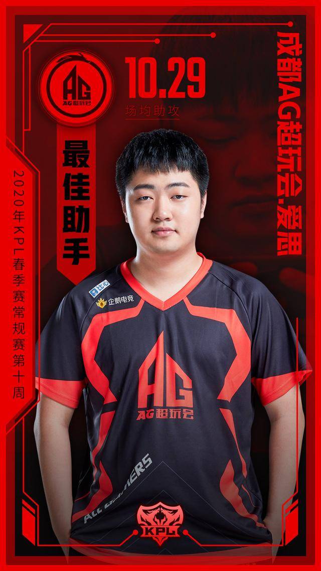 AG超玩会一诺之所以能够在比赛中打出如此华丽的战绩,自然是离不开队友的帮助,之前我们总是强调六点六对于一诺的协助,除了六哥以外,辅助爱思自然也是不可忽视的存在。作为AG超玩会战队的团战堡垒,爱思的发挥一直比较稳定,在KPL常规赛第十周的比赛中,爱思以10.29的场均助攻成为周最佳助手,试想一下,如果我们在排位中匹配到AG超玩会爱思这样的辅助选手,我们还愁上不了王者吗?