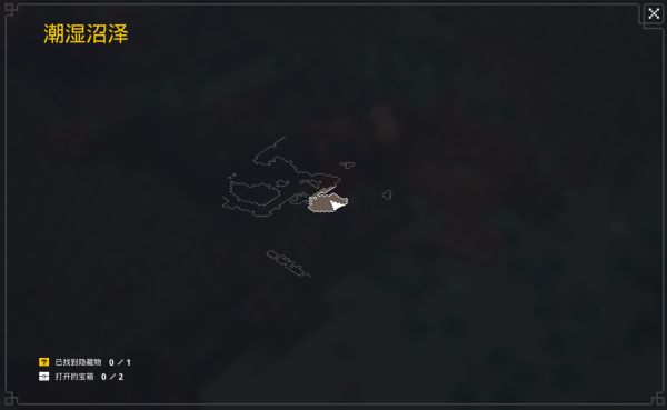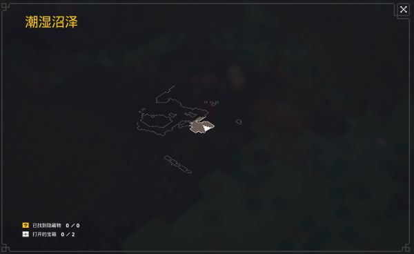 进入潮湿沼泽,按M打开地图(我这里是键鼠,因此是M键),发现已找到隐藏物为0/0,说明这把是没有潮湿洞穴的,我们可以退出关卡回到营地重新进入。