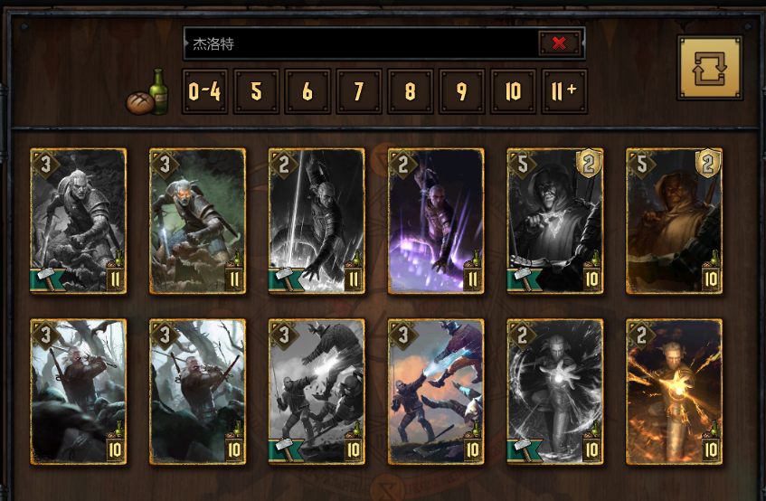 可以看到所有名称里带杰洛特的卡牌就全部被检索出来了。如果想精确查找需要输入卡牌的全名,基本和使用搜索引擎一样。