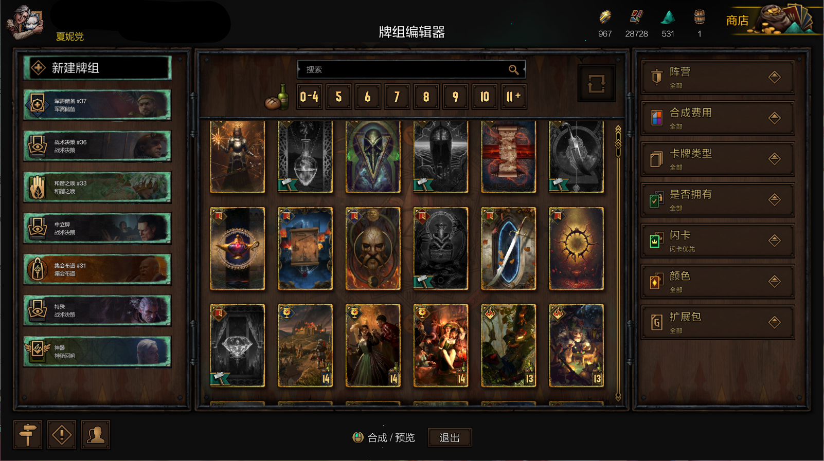 收起PVP卡牌游戏巫师之昆特牌已经正式登陆steam平台并开启免费游玩,卡组编辑器是游戏中组件套牌的重要工具,下面就来分析一下卡组编辑器如何使用