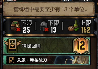 需要注意的是,在构筑卡组时至少需要13张单位牌,神器牌和特殊牌没有限制,战术牌只能选择一张。