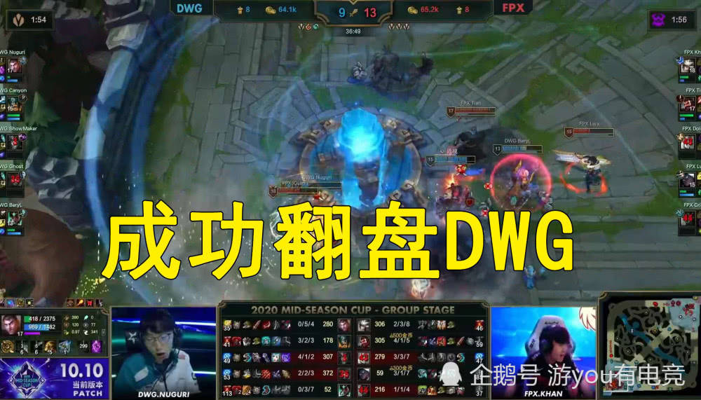 在FPX击败TES之后,季中杯的A组也成为了真正的“死亡之组”,接下来的对局中,只要赢下比赛就可以晋级,这是这次季中杯的一个“瑕疵点”,单循环的赛制所出现的弊端,但毕竟是友谊赛,侧面的也能体现出队伍的实力,那么下面,我们就来看看FPX和DWG战队的决胜之战吧!
