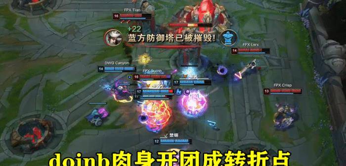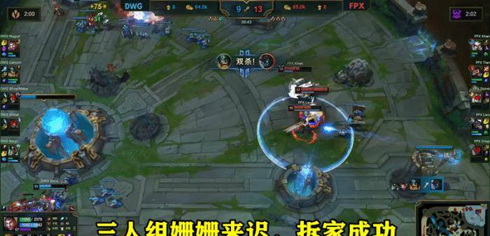 在游戏开始后,双方打的非常焦灼,在34分钟的时候经济还是持平的,因为已经到了后期,基本是一波的问题。而DWG率先发起攻势,在拿下大龙后开始推进,在这个绝境时候doinb站了出来,闪现嘲讽开团,配合队友的输出,用肉身阻止了这一次危机。并且借着这次机会,FPX直接反打击杀DWG三人,并且紧追DWG剩下的人,不让他们回家。