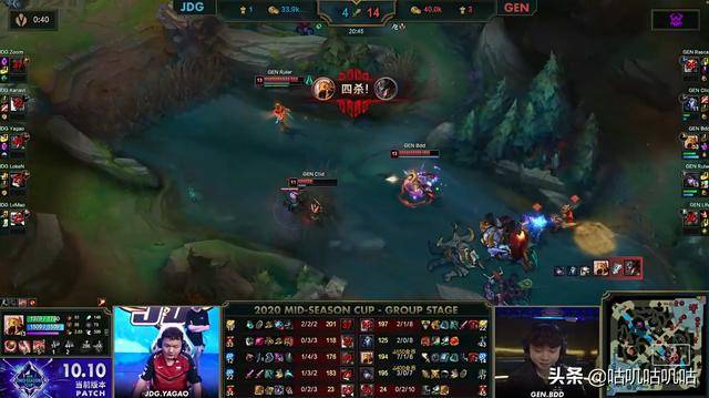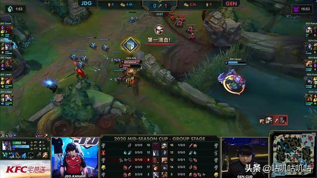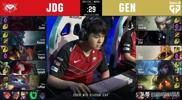 2020英雄联盟季中杯小组赛第二天的比赛正式打响,将由JDG、IG、GEN和DRX四支战队争夺两个出线名额。昨天的比赛中,FPX和TES两支LPL队伍携手闯进半决赛,如果今天IG和JDG都能顺利出线,本次季中杯的半决赛就将变成LPL内战,也是今年春季赛的再次预演。首场比赛来到JDG和GEN的对决,一支是今年LPL春季赛新晋的冠军,另一支是今年LCK春季赛常规赛第一名,在今天BO1中,将会有怎样的火花呢?