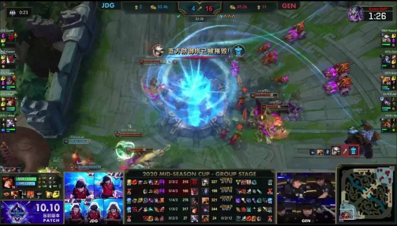 大家好啊,我是手残君。今天是季中杯的第二天比赛,昨天LPL的两支队伍FPX和TES也是有惊无险的晋级半决赛,第一局是JDG对阵GEN,JDG作为LPL的一号种子,却在赛区杯众解说不看好,阿布更是表示JDG今天一局都赢不了,而要知道JDG在LPL的春季赛除了TES外季后赛一局也没输过!结果今天JDG对阵GEN的比赛,JDG居然被全程压着打。
