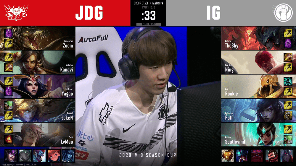 前言:大家好,我是克格汪,本期继续为大家带来LOL季中杯第二日的比赛情况;LOL季中杯首日的比赛已经结束,最终FPX和滔搏淘汰了DWG和T1携手晋级半决赛;第二日的比赛由IG、JDG、GEN、DRX四支战队进行角逐,LPL的两支队伍遭遇了两连败,IG和JDG已经确定会有一支队伍淘汰,第三局DRX击败了GEN,已经提前拿到两分,半只脚踏进了半决赛;第四局比赛为LPL内战,谁赢谁就可以将命运掌握在自己手里,好了废话多说,我们赶紧来看看第四局的比赛。