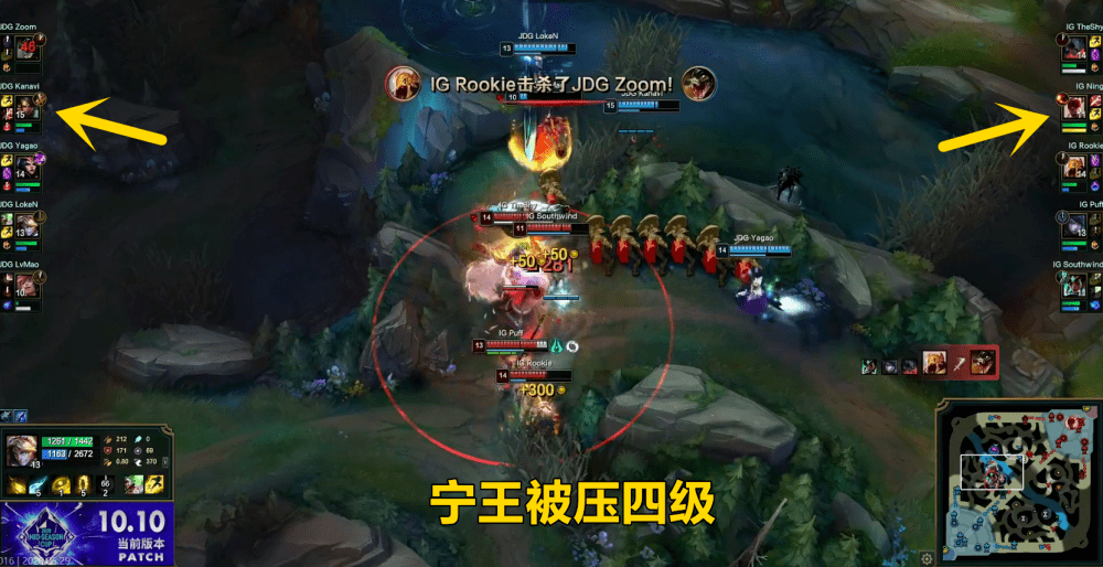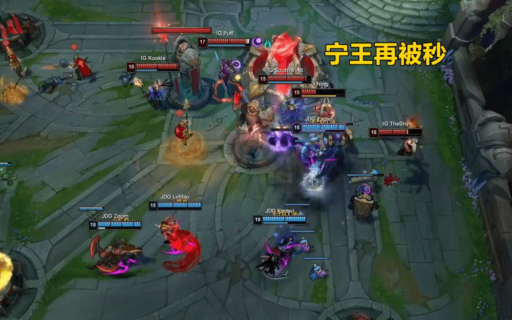 25分钟宁王在野区再次被JDG抓到击杀,此时宁王已经被对面打野压了4级,IG没了打野JDG转头就开大龙,IG过来阻止JDG直接开团,少人的IG被包抄,全员都被击杀,这局IG的野区基本是失守的,豹女狂刷已经将等级拉开很多,逮到盲僧基本都是秒杀。
