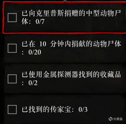 5.烹饪调味的小型猎物肉0/3:小型猎物肉好像是兔子之类的会有,记得调味!!!