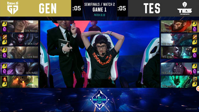 5月30日,迎来了英雄联盟季中杯半决赛第二场TES对阵GEN的比赛。目前FPX以3:1的比分击败JDG,成功晋级决赛。接下来的最后一个名额,将会在TES和GEN两支队伍产生,TES能否抗韩成功呢?让我们一起拭目以待吧!