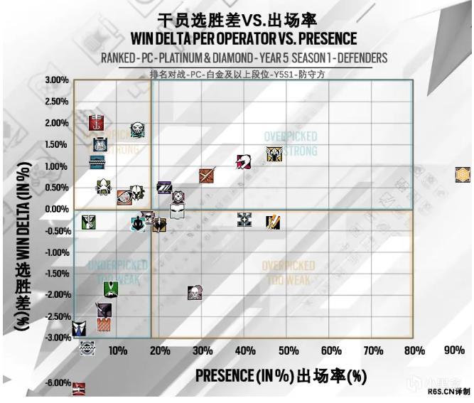 书归正传。至少从铂金钻石排位来说,Oryx的干员开发效果十分不好。虽然Goyo的先例放在那里让大家对排位玩家的战术开发能力产生怀疑。但我这次选择相信排位玩家——Oryx在比赛中也大概率是个冷板凳干员。不会完全没人用,但BP率会在5%以下。