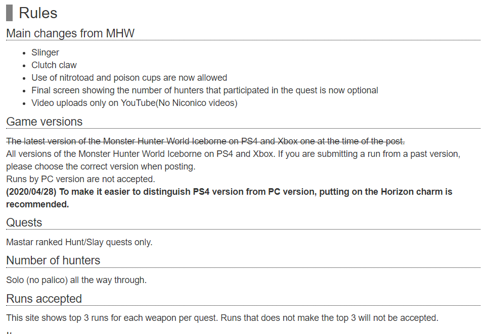 即使是江湖也有江湖规矩,更别提一个全世界玩家都参与进来的榜单了。榜单表面是给TA时长排序,深入来说就是给玩家的玩家的水平排个高低。而有一些TA玩法对于玩家的个人水平要求并不是很大,自由狩猎,不加限制,让流程的重要性,高于了实力。因此为了合理性与正规性,又要让TA榜有明确的参考价值和一定的竞技属性,wiki又提出了“TA规则”这一深入人心的概念。