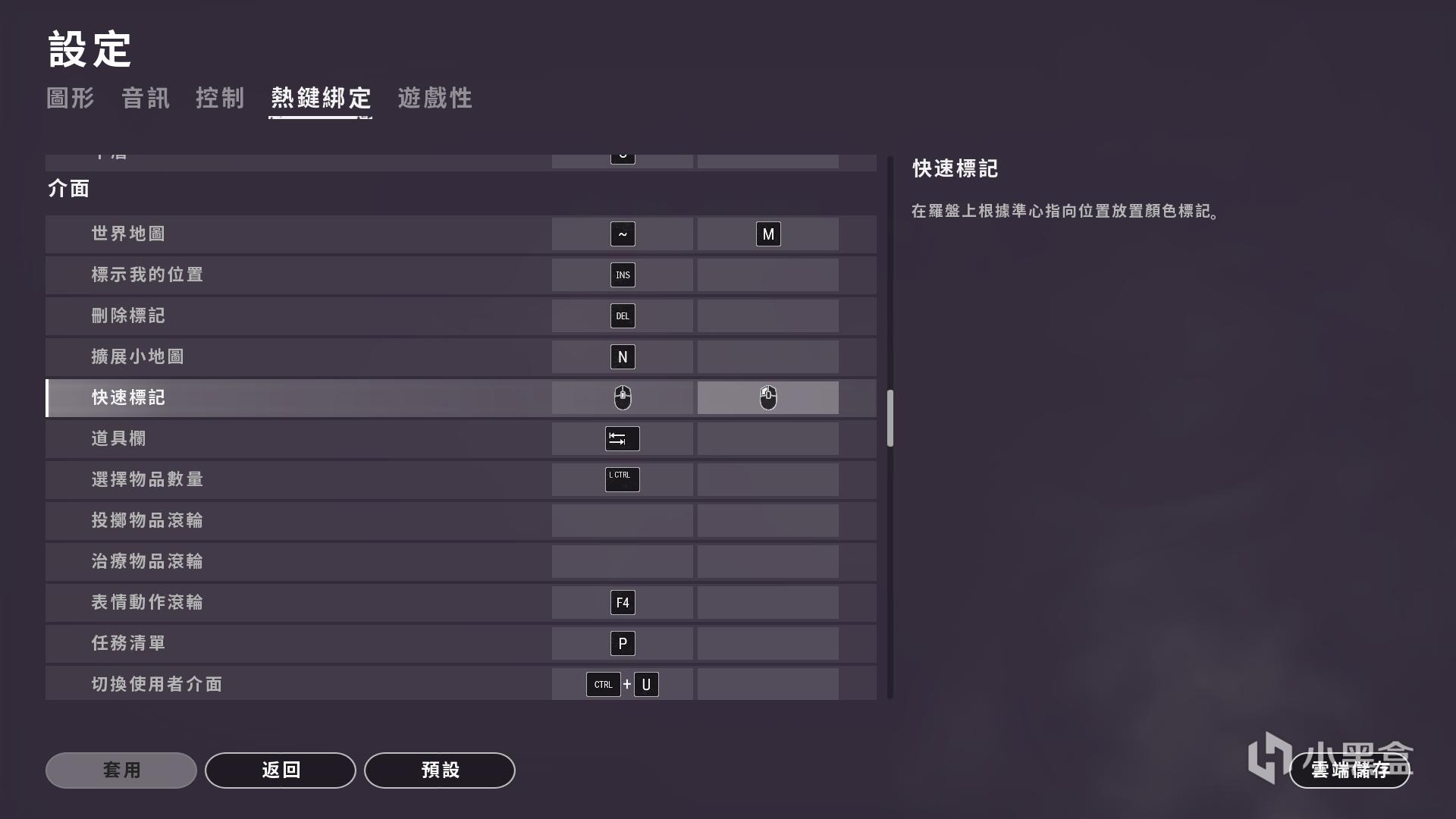 将快速标记设置成中键和左键,不会影响到左键开火。