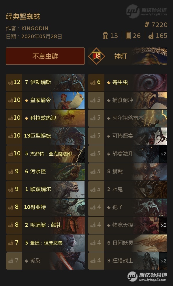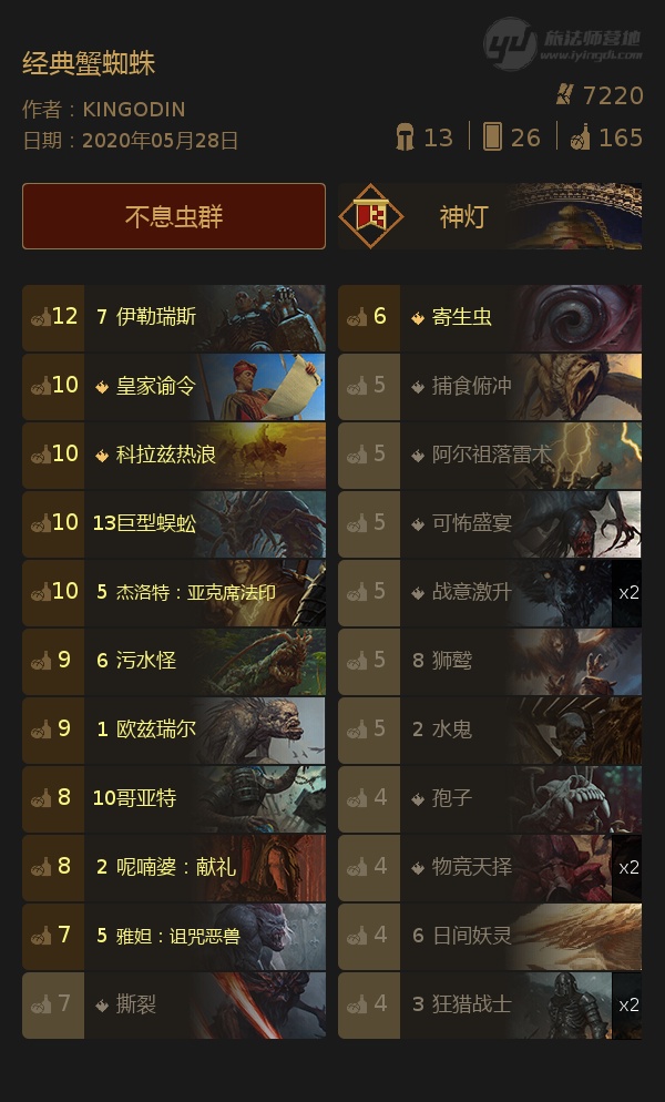 这是楼主本人自用的一套蟹蜘蛛,目前20场17胜2败1平,从1一直打到了目前的2462,而且后面几乎都是连胜,2平1负皆是昨天还在热手时候打出来的(输了一个霍桑一个偷梁换柱)。应该是可以说明,目前环境对于蟹蜘蛛还是比较友好的,推荐想上职天的新人以及考虑用怪兽冲分的玩家使用(后面这个我觉得还是比较少的)。
