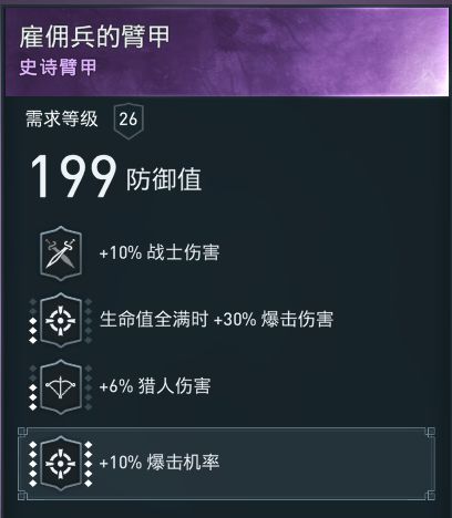 如果我们想要玩玩战士,那么这件装备上的“猎人伤害”就成了我们不太想要的词条。但是考虑到它带有“战士伤害”和“满血爆伤”,它依然是一件好用的暴击装备。