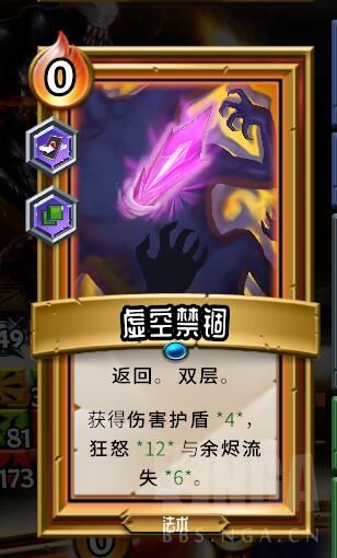 这就是罪魁祸首,打上双层之后,0费,12狂怒,4层无敌盾,这游戏找不到第二张收益这么夸张的卡,至于那个减费debuff,只要卡组全是零费,就是正收益。
