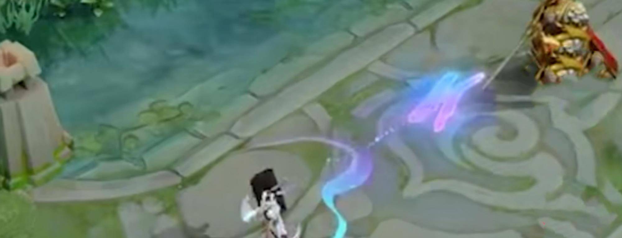 二技能是个锚点严重的一个技能,锚点运用得很离谱,看着就像是原版皮肤改成渐变色的样子,画笔的模型一点都没有动的感觉,不知道大家能不能看出来?无论是把笔扔出去还是笔自动回来,都是感觉仅仅改了一个颜色,这就显得有点无解,一款kpl的皮肤做得这么省事?在这个二技能的加持下,很完美的拉低了这款皮肤的水平,相比周年限定皮肤那可是差太多了,人家那个皮肤的二技能完全没有用锚点的嫌疑。