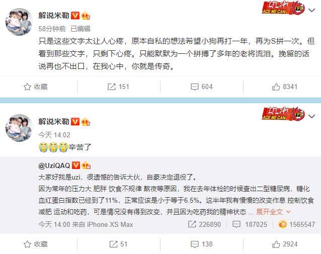 LPL解说米勒则是说出了很多网友的心声:私心希望UZI再打一年,为了S10世界赛再拼一年,但是看到了UZI自己发布的退役声明,能够感受到他的伤痛,所以说不出挽留的话了。最后米勒表示:在自己心目中,UZI就是传奇。
