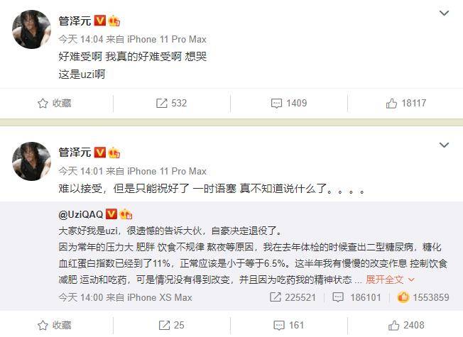 首先是解说MacT,大家都知道的他就是UZI的粉丝,曾经因为在解说中说出“UZI还在输出”的经典名言而惨遭爆破。这次对于UZI退役一事,Mac T也表示自己要难受死了,宁愿UZI永远不官宣,永远给自己留有一个念想。