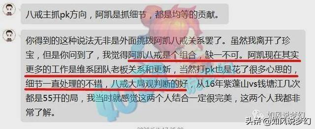 如今的武神坛,珍宝阁服战队一家独大,双猪组合领衔的指挥团队夺冠无数。当年,是文哥一手促成了这一对黄金搭档,在他的眼中,欧阳凯和猪圈的组合非常完美,缺一不可!