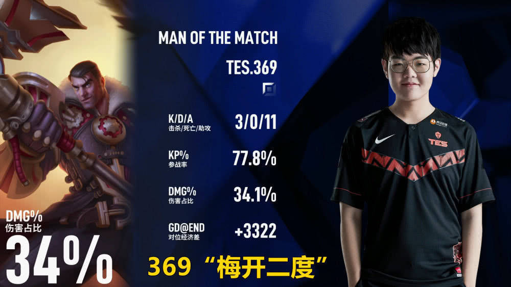 这局比赛滔搏依旧打得很好,特别是369这个点,此前大家都说369是队内最不稳的,但是从这次季中赛来看,369的成长实在是太快了,第一局使用猴子开局就摇个9,强势拿下MVP,第二局倒数第二波团战在阿水被秒的情况下,369杰斯再次站了出来,拿到第二局的MVP,3-0-11的战绩,对位经济领先3322,伤害占比高达34%,369这个BO5应该全是9,滔搏的三叉戟彻底宣布成立,距离LPL内战仅差最后一局。