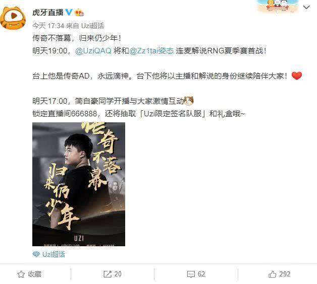不过话说回来,你们是不是也期待Uzi的退役首播呢?第一次Uzi以退役选手的角度去评价前任队友,还是很值得我们看的,所以记得第一时间去观看。