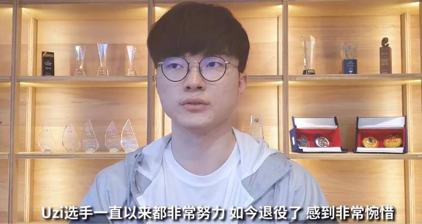 然后是职业选手中,除了perkz、Rekkles、Doublelift这些海外选手在UZI退役当天就发布过视频表达不舍外,比较意外的是连Faker都为UZI录了视频。李哥在视频中谈到了UZI退役一事,他表示对于自己来说,UZI是在赛场上互相竞技了很多年的优秀选手,听到了他退役的消息内心很不舍,为他感到非常惋惜,相信UZI的粉丝也很难过,最后Faker也表示希望UZI不以选手身份的生活也可以一帆风顺,继续得到粉丝们的支持。