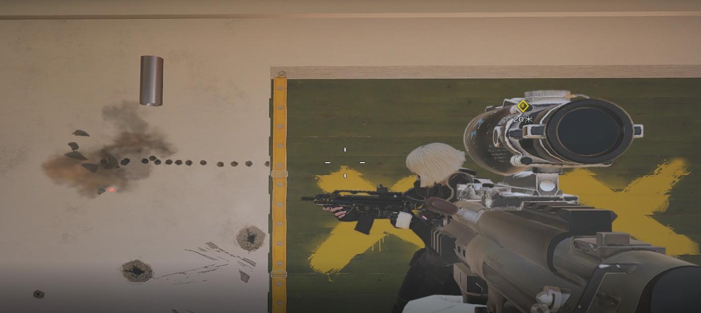 这里为M762的弹道,可以看出向右偏较严重,所以需要向左下压枪以达到控枪的目的
