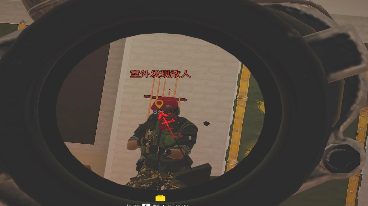 在上面两张图中,我们能发现敌人在同样的地方,但是获取的信息是截然不同的,这就说明了离掩体越近在对枪时越不利,而我们需要做的就是尽量离掩体保持一定的距离从而利用视角差创造对枪优势。举个栗子(挂窗玩家福利)