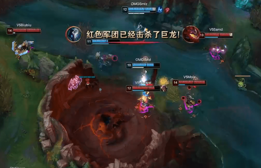 不过在这一局中,V5强势的中野联动帮助队伍在前期打出了很大的优势,让这一套本身就多核的阵容在前期就拥有着不俗的战斗能力。与此同时,也因为打野的强势,V5在这一局中也是比较轻松地连续控下了四条小龙从而获得了龙魂Buff。