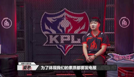 当主持人问到AG超玩会的企业文化是什么时,作为AG超玩会战队的指挥,爱思很认真地回答了这个问题。爱思表示道,相信大家都知道,我们(AG超玩会)是一支比较有素质的战队,在平时的训练赛中,为了尽可能彰显我们队员的素质,在进行沟通和交流时我们一般会选择以“发电报”的方式来进行沟通,比如说赛内语音什么的。说到这里时,AG超玩会爱思的脸上浮现出一丝笑意,而如果你是AG超玩会战队粉丝的话,你应该知道,爱思的笑夹杂着对AG超玩会六点六的调侃。