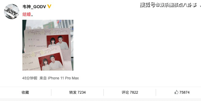 6月8日消息,前LOL选手、绝地求生4AM战队指挥@韦神_GODV发博宣布婚讯!祝韦酱和蜂蜂侠新婚快乐!百年好合!!从微笑,若风,草莓,包括鸭脖龙,pdd退役,韦神结婚,电竞第一代就算结束了吧?