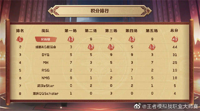 在6月7日高分组的对抗,是RW侠与成都AG超玩会的主场!成都AG超玩会三局登顶,RW侠险破单日最高积分记录!独门天胡弟弟射大战七家法刺!魔种阵容再次登顶……最终,RW侠以49分的总积分位列高分组积分榜榜首! 成都AG超玩会紧随其后,以44的总积分排名高分组积分榜第二。