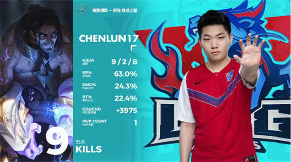 本局比赛MVP给到了LNG上单选手chenlun17的塞拉斯!