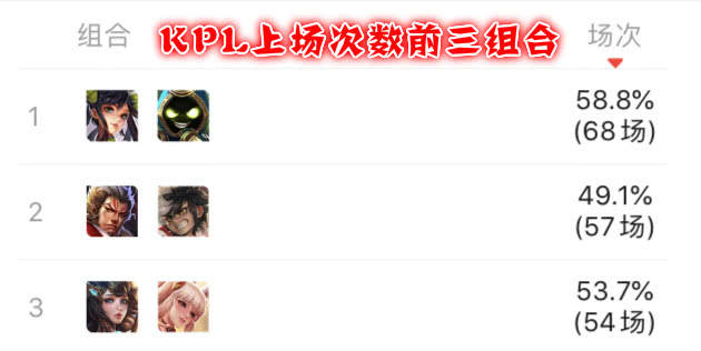以上就是本届KPL上场次数最多的3种射手加辅助组合,不同于路人局常用的明世隐、瑶、孙膑,都是出场率不太高的辅助,但他并不专属于KPL,路人局也可以用,大家不妨试试,你会发现这就是真香现场,争取在S19赛季末上更多的分吧。