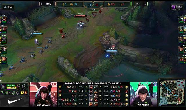 双方BO3第一局开始,蓝色方VG,红色方RNG。