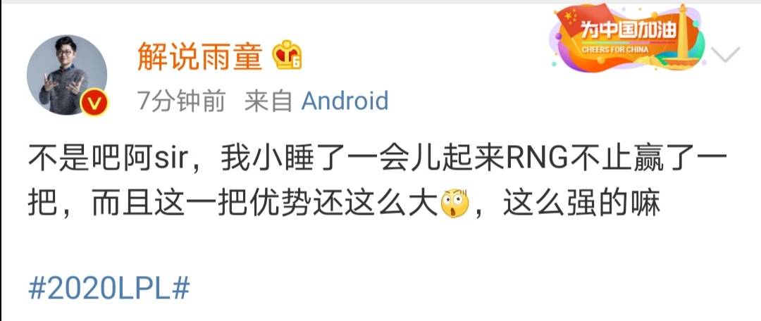 雨童:不是吧,阿sir,我小睡了一会儿起来,RNG不知赢了一把,而且优势还这么大。这么强的嘛