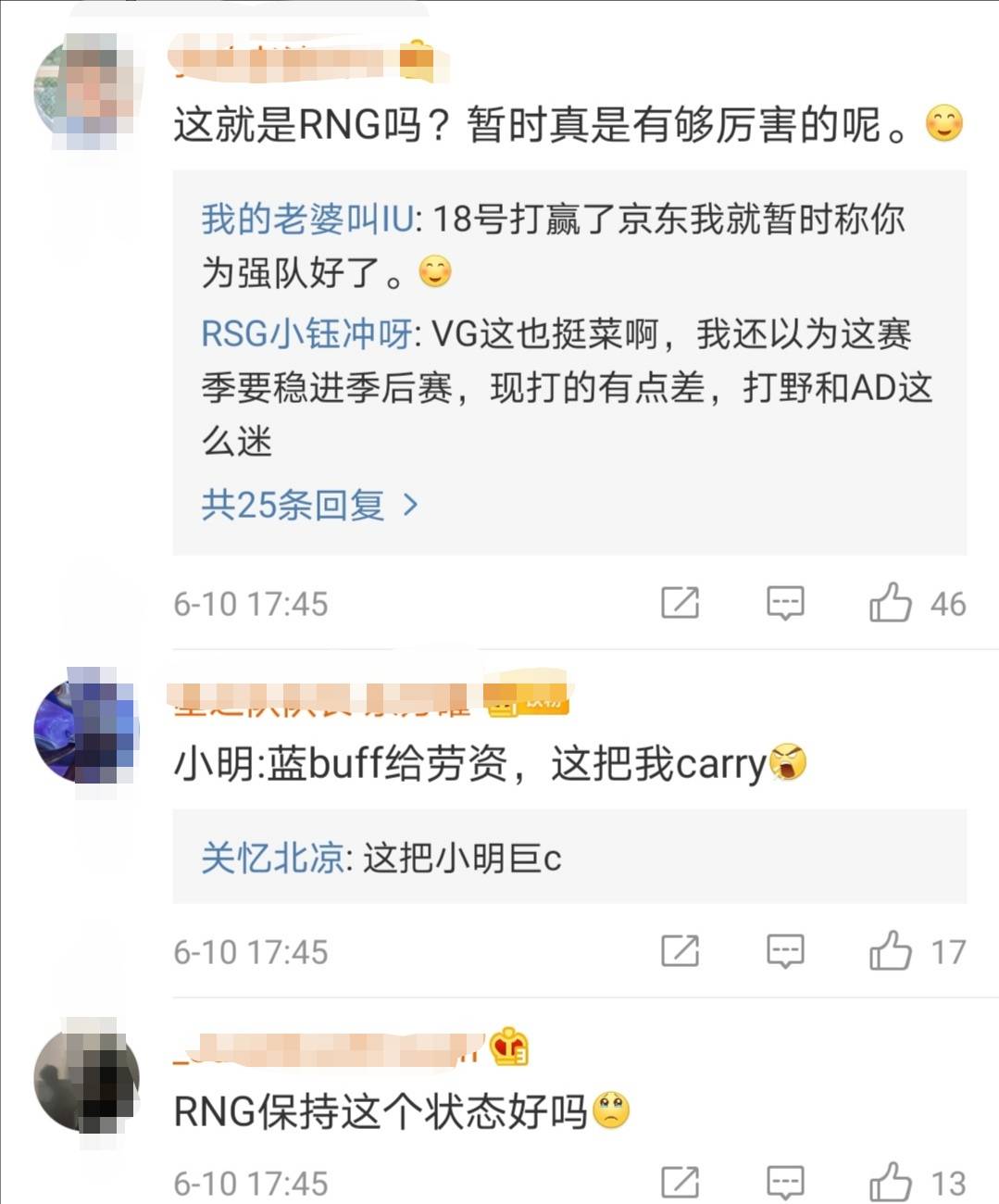RNG2:0击败VG也是引发了粉丝网友的议论