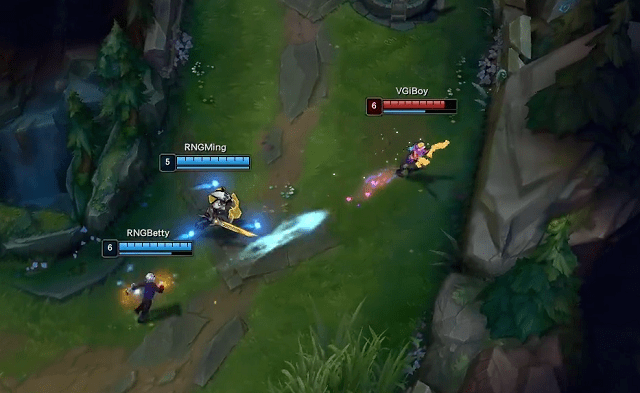 对线期RNG的下路打的非常的猛,在VG辅助泰坦率先动手的情况下RNG下路双人组不慌不乱的进行反打。因为Iboy女枪带的净化和闪现,RNG多出一个召唤师技能治疗,所以在前期对拼的时候丝毫不虚,拿下的iboy的一血,Iboy的净化只能接了个寂寞。