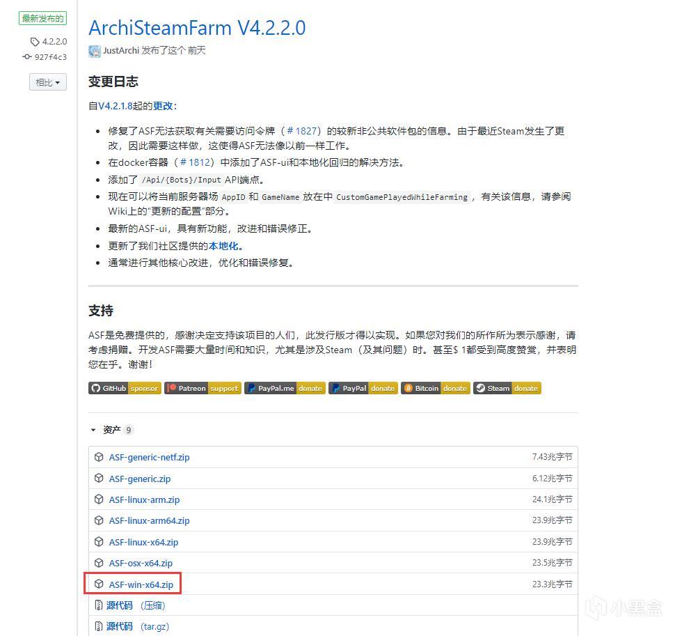 首先到官方网站下载ASF,ASF下载地址:https://github.com/JustArchiNET/ArchiSteamFarm/releases